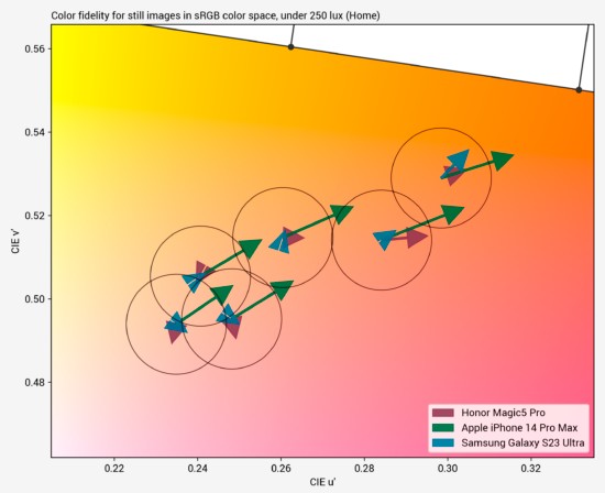 É apontado que o Magic 5 Pro apresenta cores e contraste melhores que alguns de seus principais rivais, fornecendo boa experiência em HDR, mesmo que seu pico de brilho seja inferior ao iPhone 14 Pro Max, por exemplo, que atinge 2.000 nits.